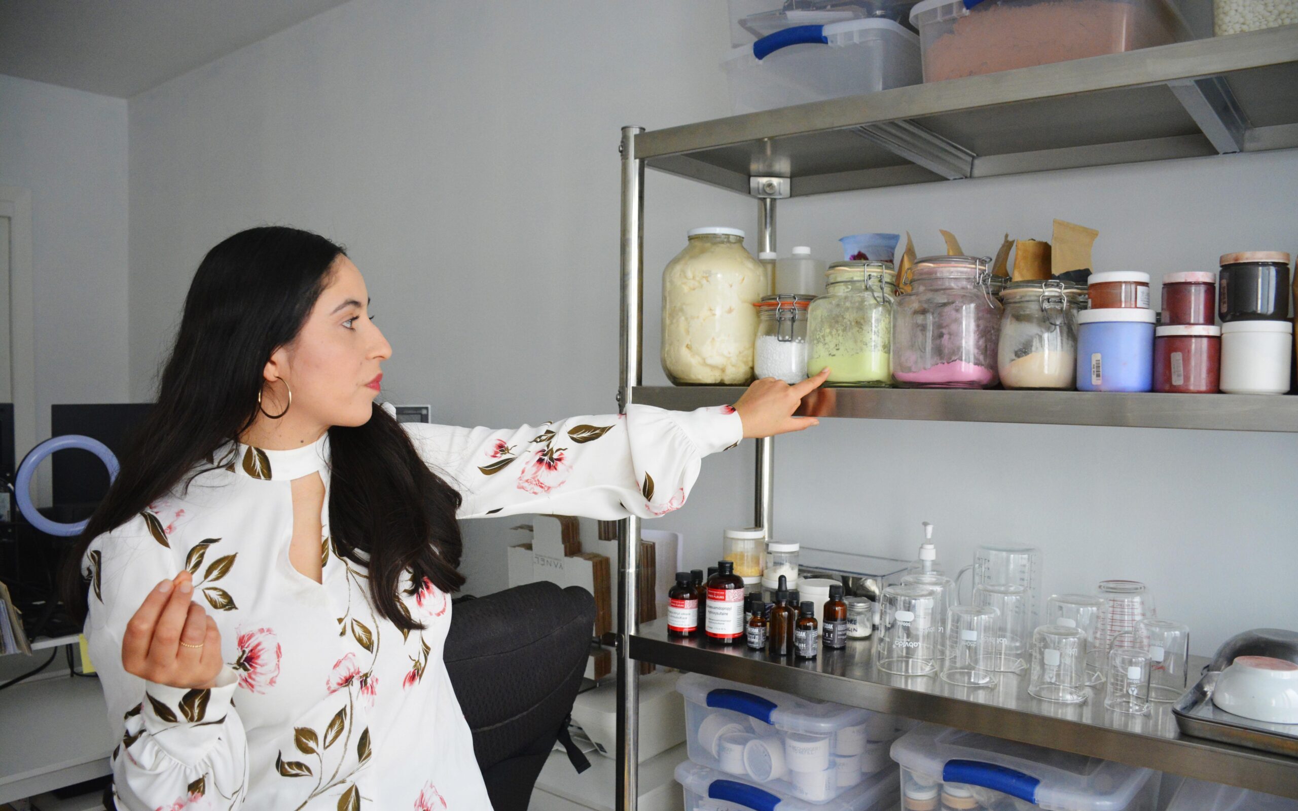 La SQRD est allée à la rencontre d’Anaju Enciso, fondatrice de Yanél cosmétique nutritive. Elle nous a accueilli chaleureusement et nous a fait visiter son laboratoire, où elle fabrique divers produits de beauté et de soins pour le corps. Sur sa table de travail se côtoient des échantillons de cosmétiques, mais aussi des betteraves, des carottes, des épinards et un extracteur à jus.