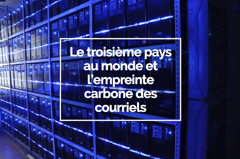 Il nous faudrait tout un chapitre pour parler de la pollution générée par les données et la circulation sur le Web. Sachez toutefois que selon le site du ministère des Ressources naturelles du Canada, « les centres de données consomment environ un pour cent du total de l’électricité consommée au Canada tous les ans, et leur demande continue d’augmenter. Environ la moitié de l’énergie consommée par un centre de données est consommée par des serveurs informatiques, et environ 40 % servent à refroidir ces serveurs [i] ». « Envoyer un courrier électronique de 1 Mo à 1 personne équivaut à la consommation directe de 25 Wh, soit 25 min d’utilisation d’une ampoule de 60 W. » (Source : Article de blogue Ville en Vert « Le troisième pays au monde et l’empreinte carbone des courriels »)